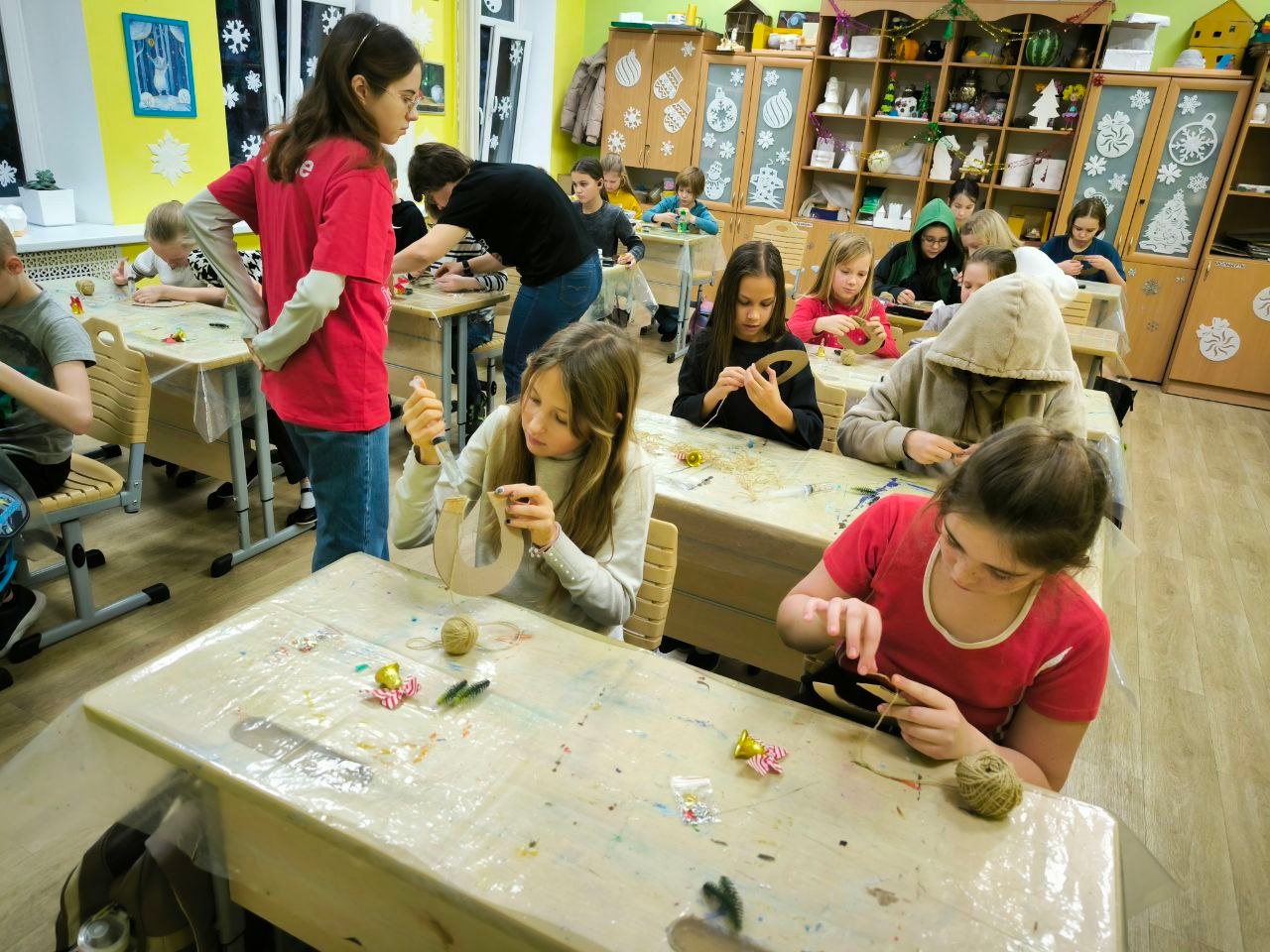 17 декабря Кривёнышева Виктория, председатель Первичного отделения Движения Первых ДЮЦ «На Комсомольской», обучающаяся студии «Вернисаж» провела с воспитанниками нашего Центра мастер-класс по изготовлению сувениров, в рамках Всероссийской акции Движения Первых «Российский детский Дед Мороз». Во время мастер-класса ребята изготовили своими руками подкову из картона и украсили ее по праздничному. Виктория познакомила ребят с историей «счастливой подковы» и с техникой выполнения праздничных сувениров.