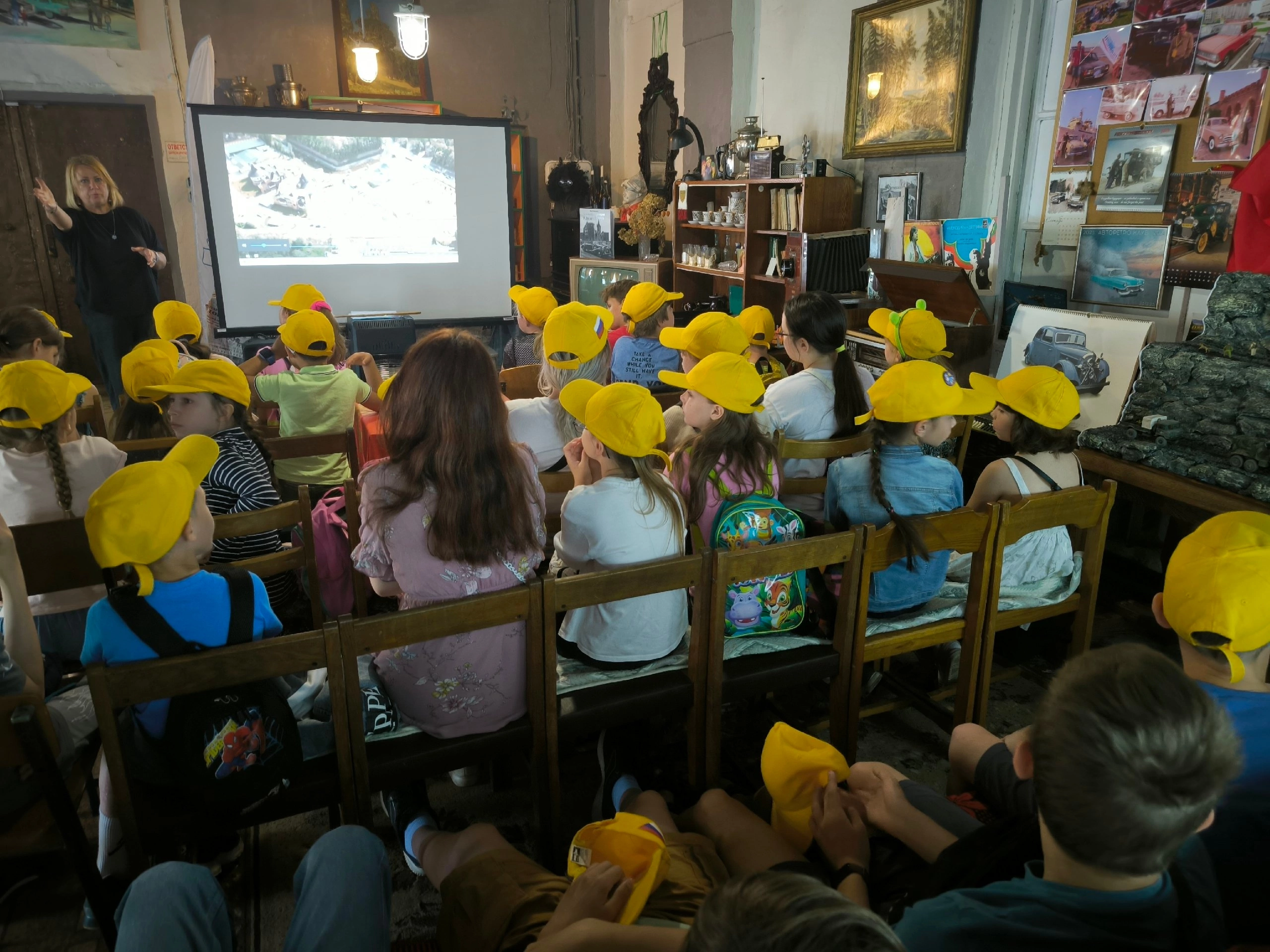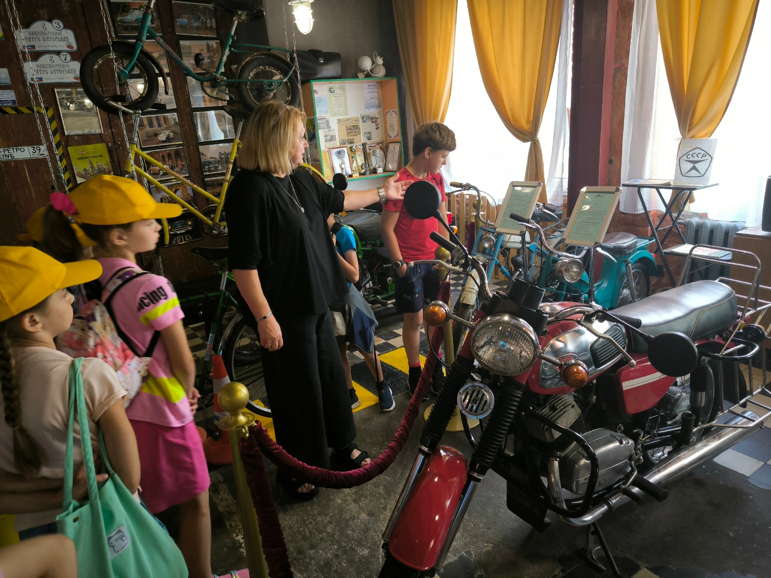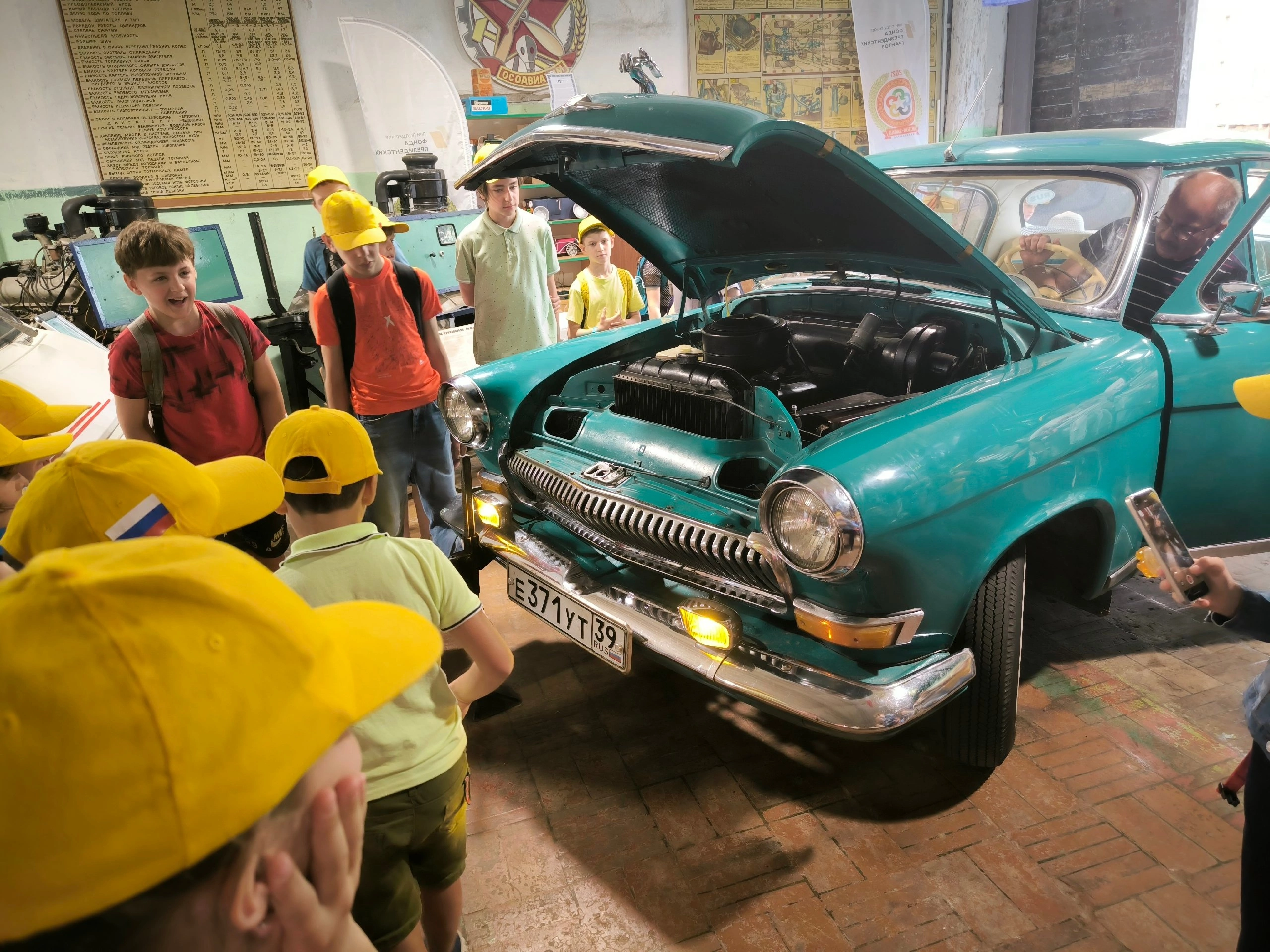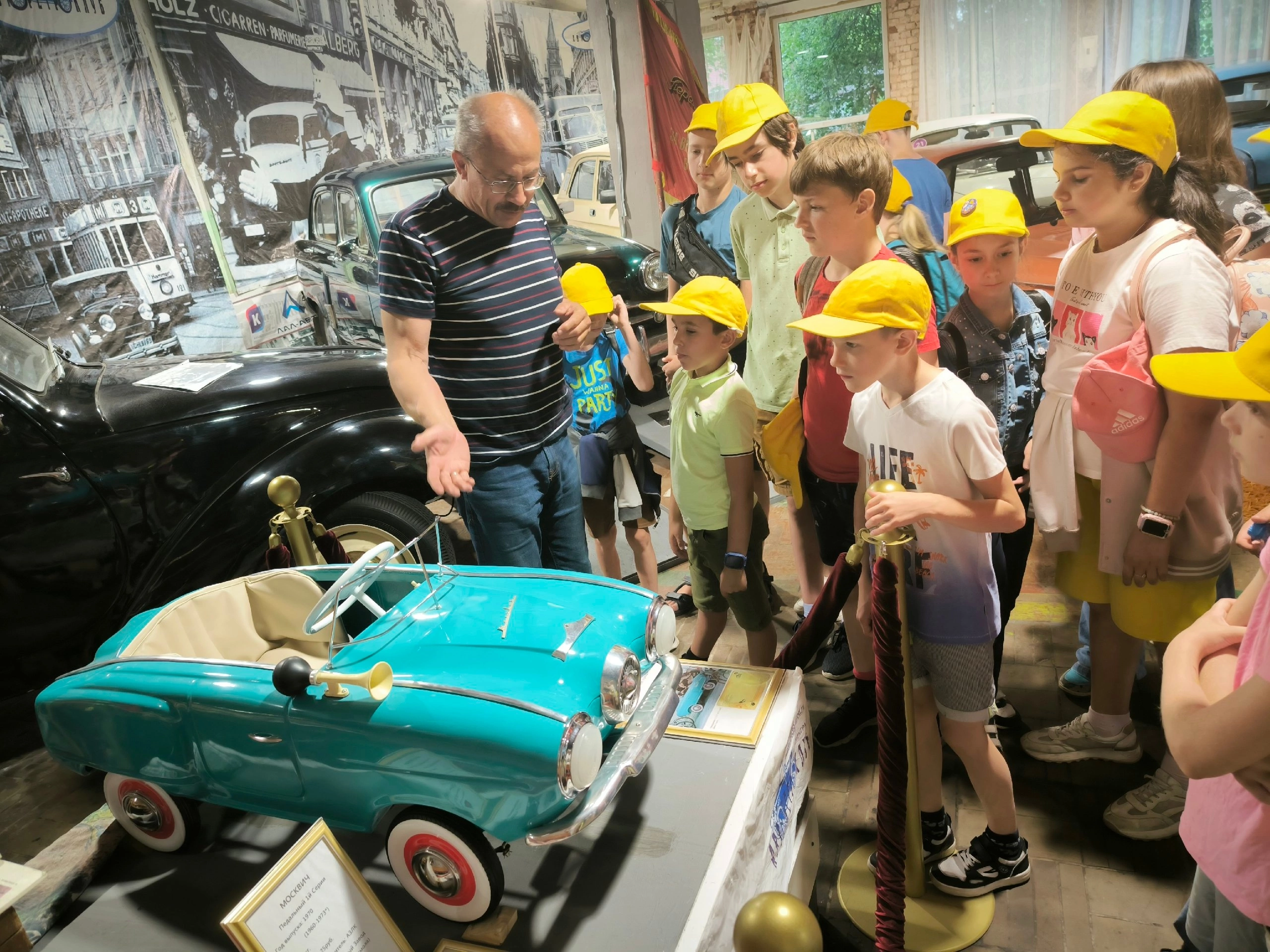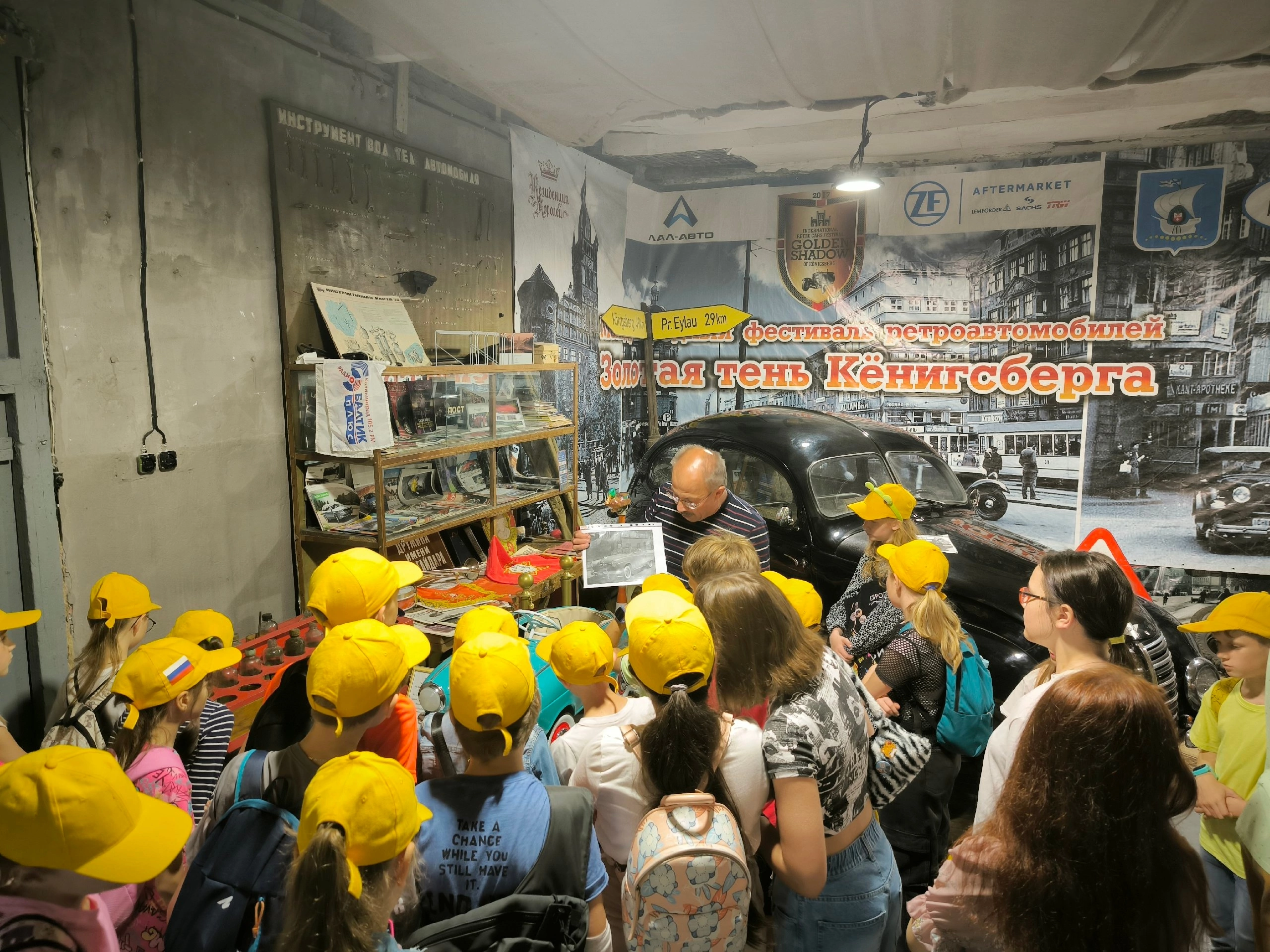 Во время обзорной экскурсии ребята познакомились с техникой советского периода, заглянули под капот, послушали рычание мотора ретроавтомобиля, почувствовали себя автомехаником в старинном гараже, узнали, как проверить фары и смазать детали машины на настоящем посту смазчика прошлого века; узнали, почему на старинных авто шины белого цвета; кто и почему изобрёл мотоциклетную каску; где родился мотороллер; куда делись ремни безопасности; кто придумал шипованную резину. В заключении дети посмотрели короткометражные фильмы об изобретателях машин и истории появления первых автомобилей, фильм с Калининградской выставки ретроавтомобилей и коллекции автомобилей «АвтоРетроКлуба».