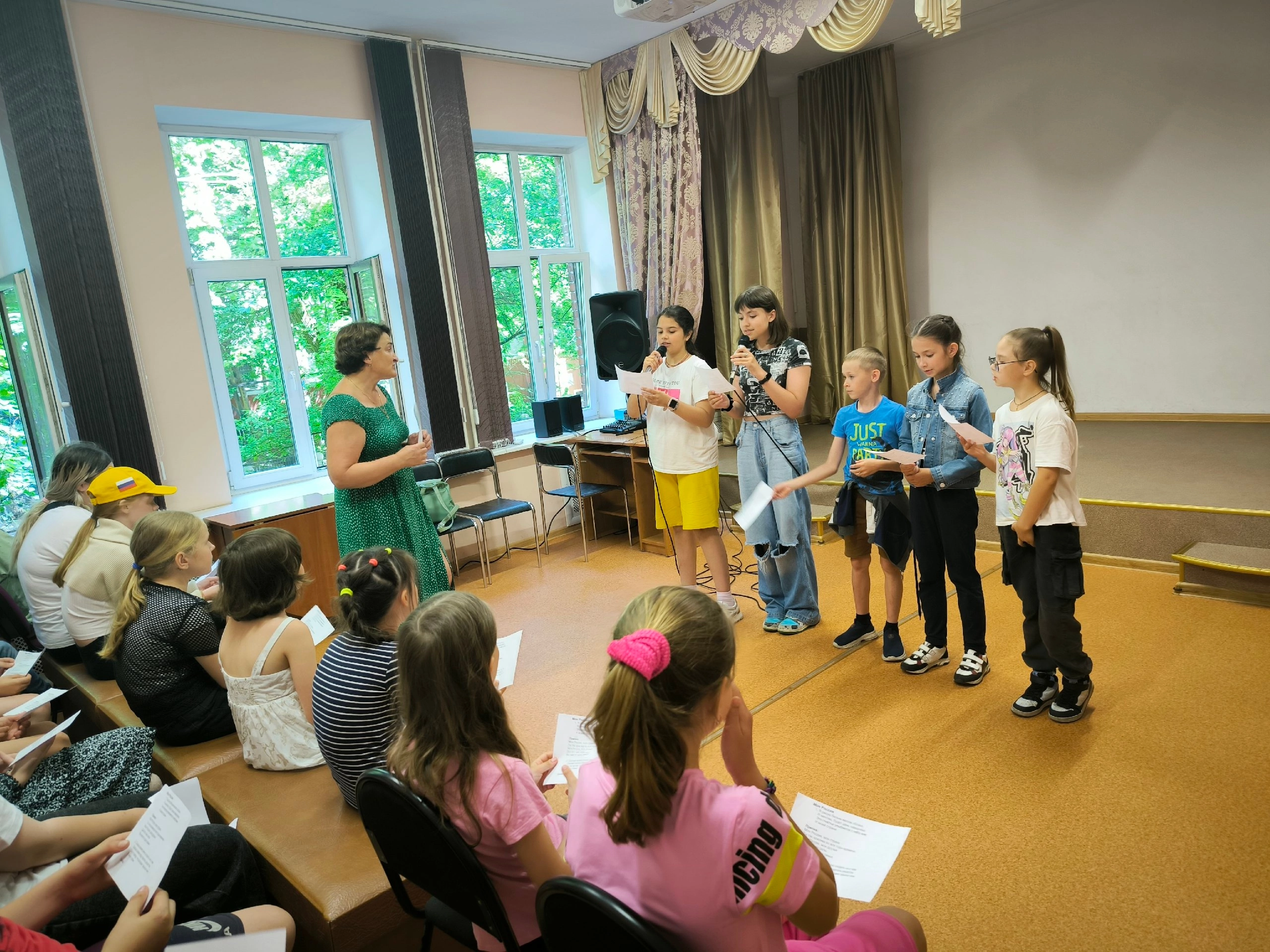 После обеда ребята начали подготовку к Всероссийскому флэшмобу «Песни о родной стране», направленный на патриотическое воспитание молодёжи, который проходит в рамках межведомственного культурно-образовательного проекта «Культура для школьников». Его цель – объединить молодёжь страны, дать ей возможность заявить о себе и своём отношении к Родине.