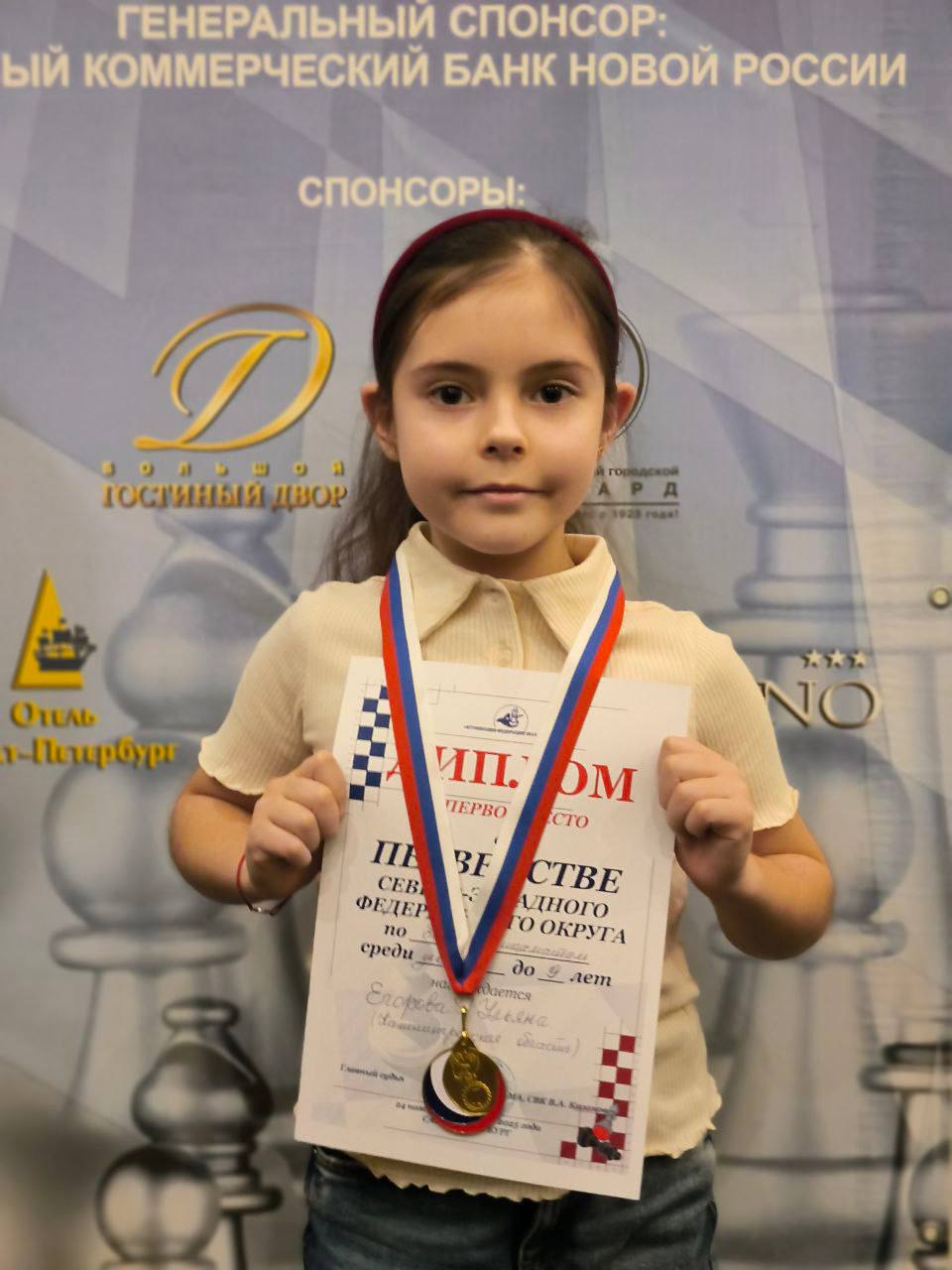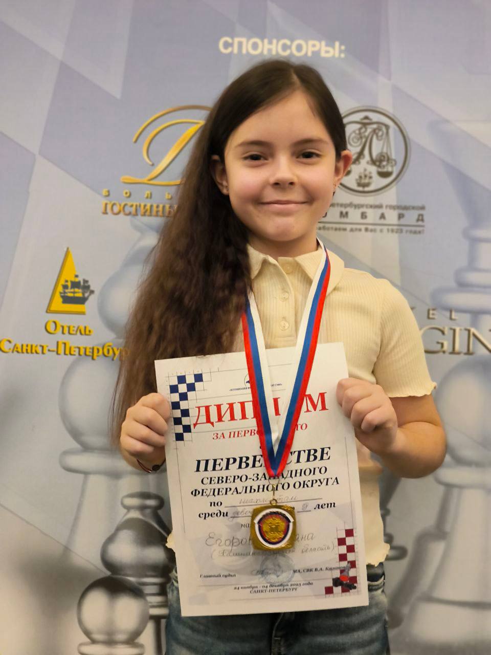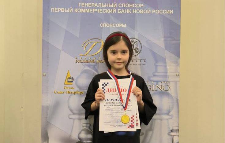 С 23 ноября по 4 декабря в городе Санкт-Петербурге проходили турниры первенства СЗФО по шахматам среди юношей и девушек – классические шахматы, быстрые шахматы, блиц. От студии «Королевский гамбит» (руководитель Валеева Гульназ Фанизовна) выступала Егорова Ульяна! Ульяна выступила блестяще! Во всех турнирах заняла первые места! И стала абсолютным чемпионом в своем возрасте, среди девочек до 9 лет.