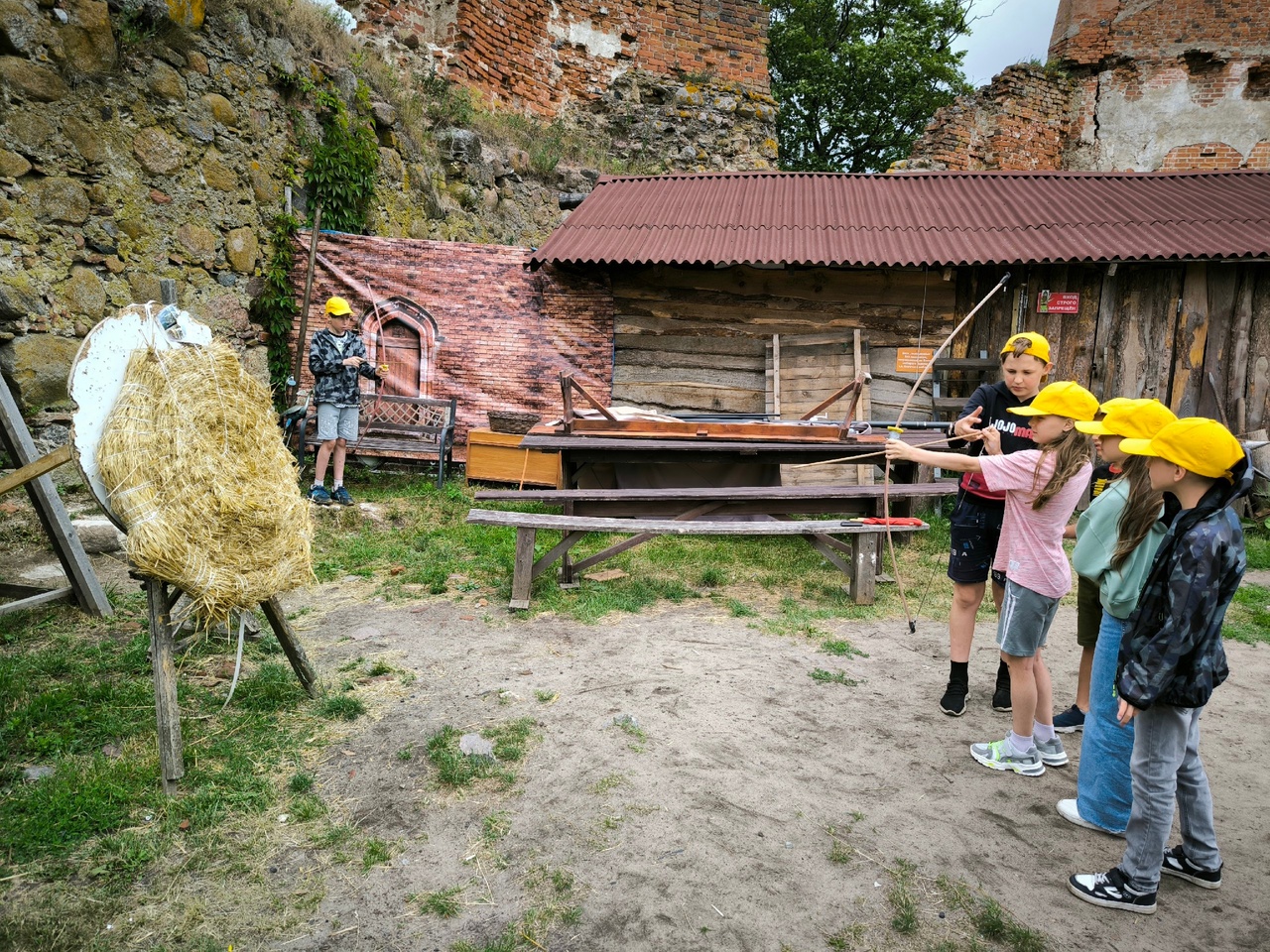 Во время экскурсии ребята познакомились с музейно-историческим комплексом, узнали историю замка Шаакена от пруссов до переселенцев, историю Тевтонского ордена, посмотрели оружейную комнату, где были представлены мечи, топоры, сулицы, алебарды, щиты, примерили рыцарские доспехи, и в заключении поучаствовали в соревнованиях по стрельбе из лука, ходьбе на ходулях и средневековых лыжах.