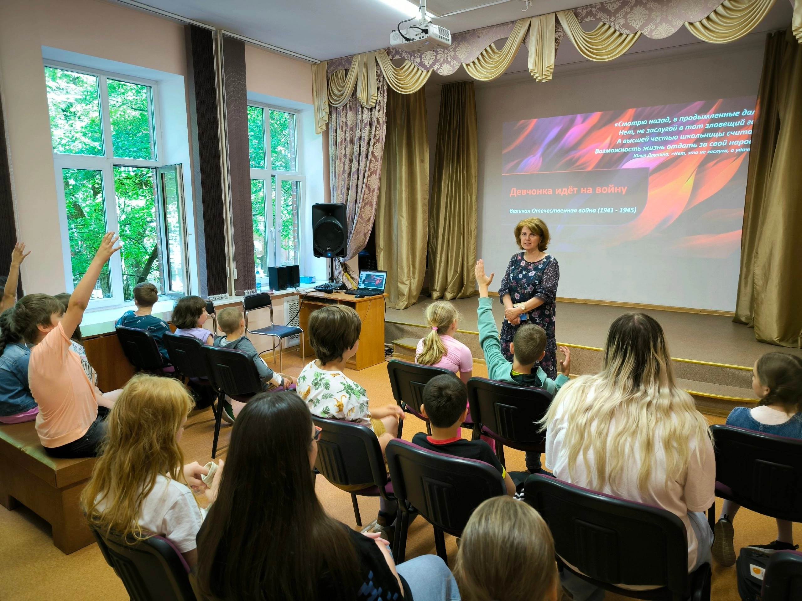 Во второй половине дня сотрудница библиотеки им. А. Гайдара Красковская Лилия Ивановна провела час памяти «Девочка идёт на войну» в преддверии Дня памяти и скорби. Сотрудница библиотеки рассказала ребятам о первых часах начала Великой Отечественной войны - первых часах того памятного дня 22 июня 1941г.; о детских книгах о войне, нескольких известных советских писателях – Маргарите Родионовой, Денисе Коваленко, Надежде Надеждиной, Александре Родимцеве; о героях войны. Подробнее Лилия Ивановна остановилась на советской лётчице истребительной авиации Лидии Владимировне Литвяк, самой результативной женщине-пилоте Второй мировой войны, Герое Советского Союза. Дети узнали об истории жизни летчицы, узнали, почему она получила прозвище «Белая Лилия», посмотрели отрывки интервью Лидии. В завершении мероприятия ребята почитали отрывки из детских книг о войне и почтили память погибших воинов героях Великой Отечественной войны минутой молчания.