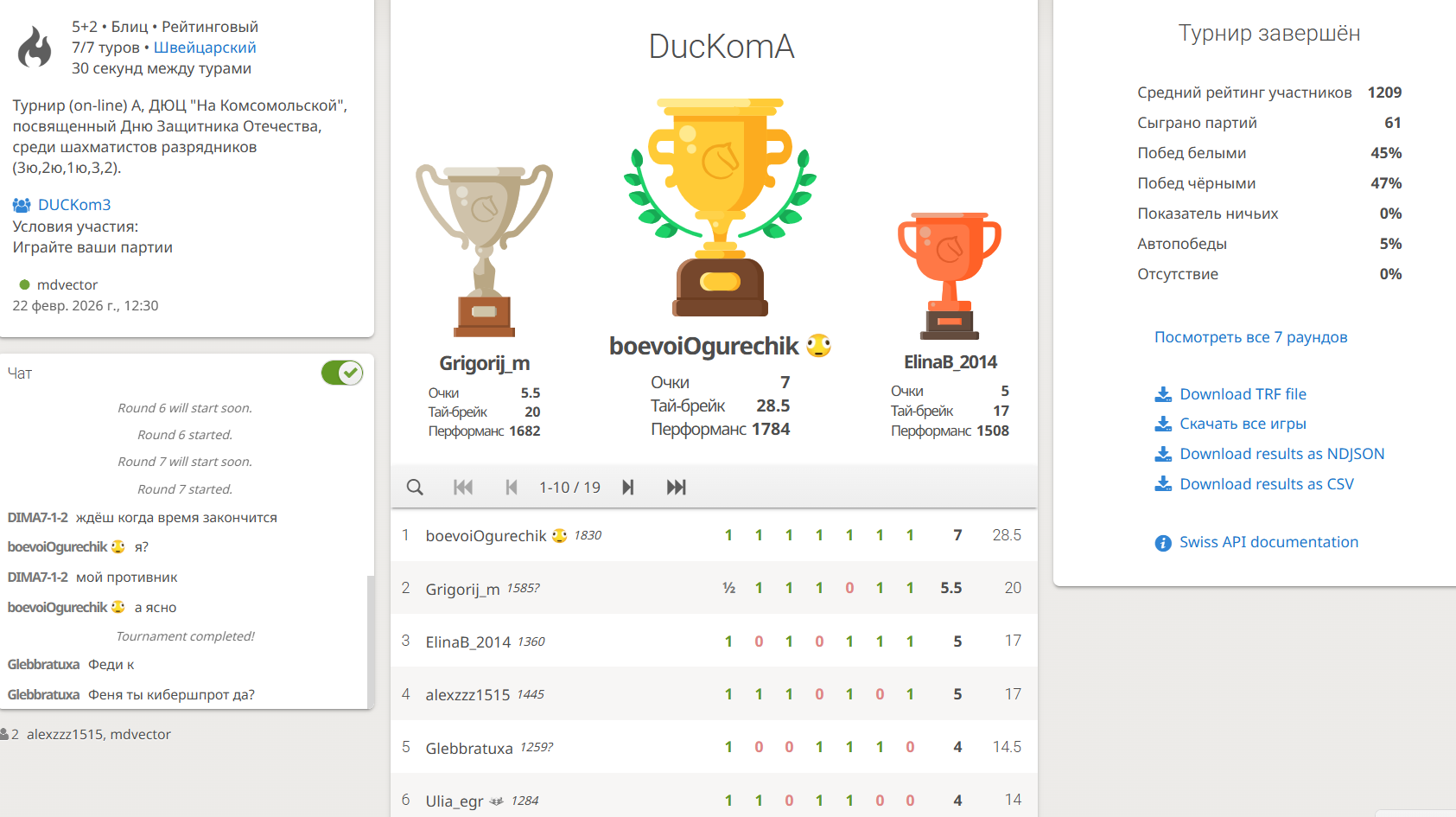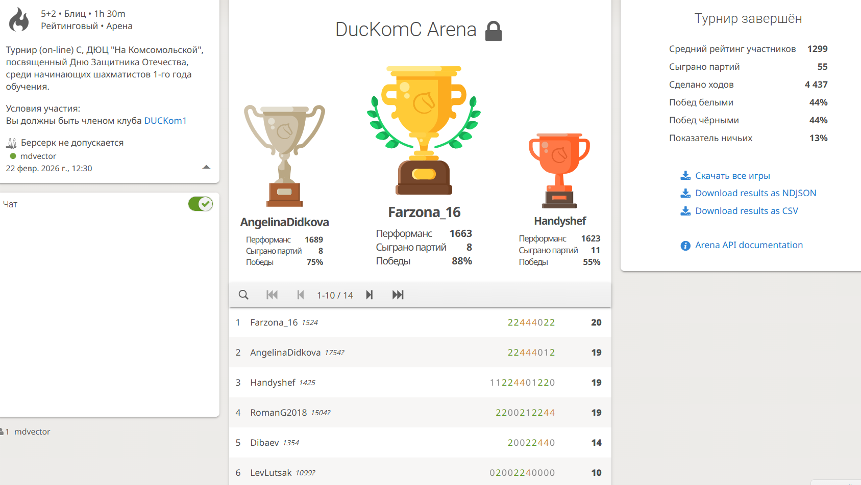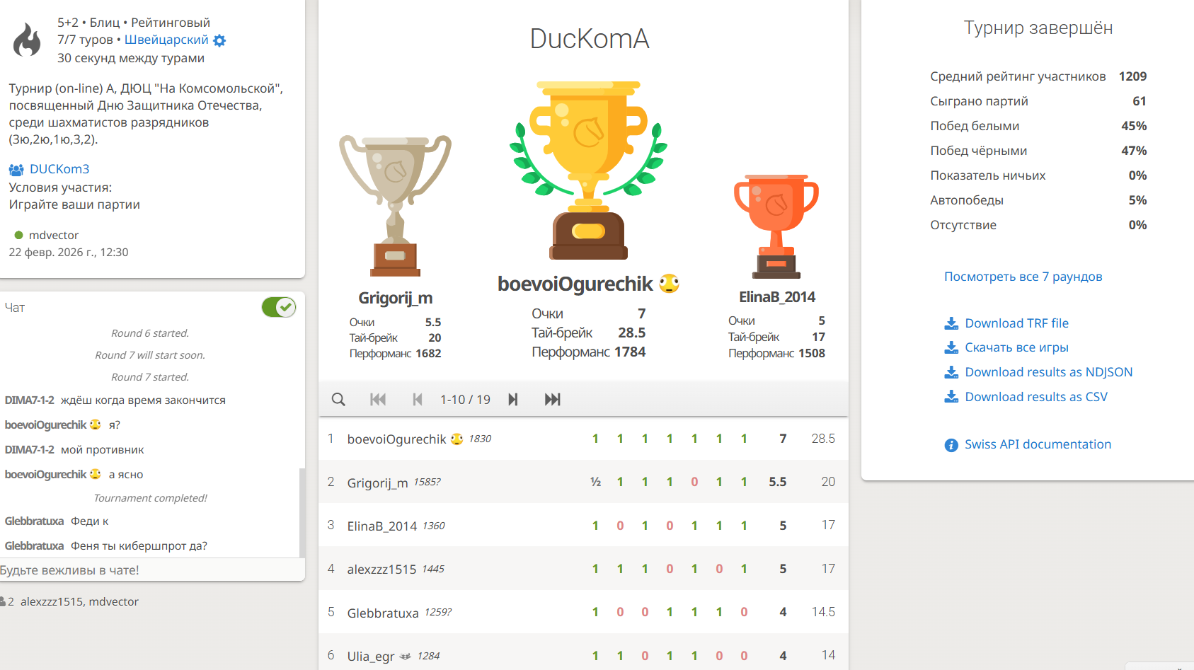 22 февраля в Детско-юношеском центре «На Комсомольской» были организованы и проведены спортивные соревнования в трех группах, на шахматном ресурсе lichess.org: